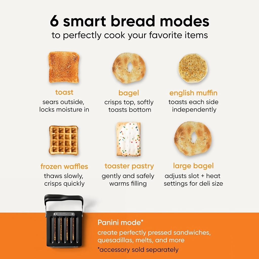 - Panini Mode: Elevate your lunch with the panini press accessory (sold separately) for melty, crispy sandwiches.