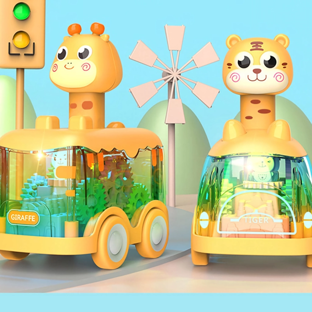Baby Animal Toy Cars with Light-Up Gears: Interactive Educational Play for Toddlers