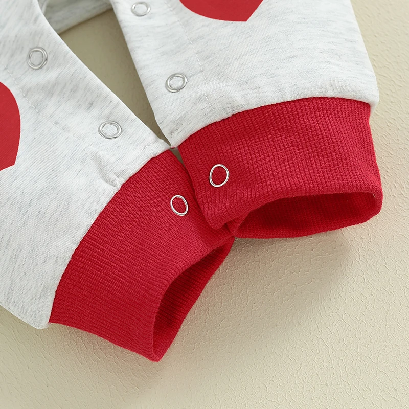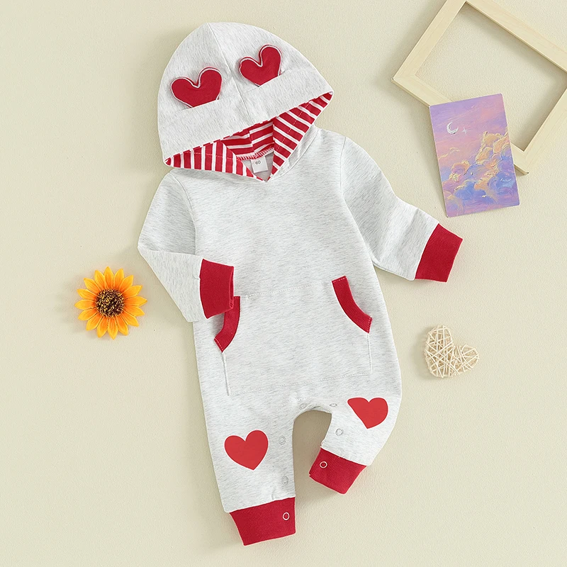 This heart print hooded romper is not just for Valentine’s Day but also perfect for daily wear, playdates, and special occasions in spring and autumn. Its cozy design keeps your baby comfortable during cooler days, while the heart print adds a festive touch any time of the year.