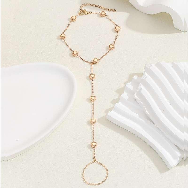 Boho Chic Love Heart Hand Chain Bracelet with Ring