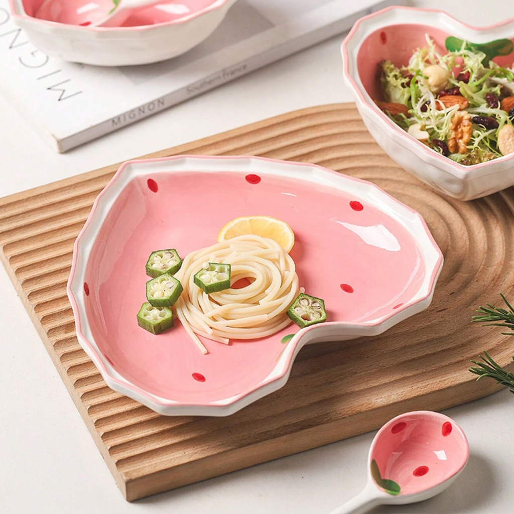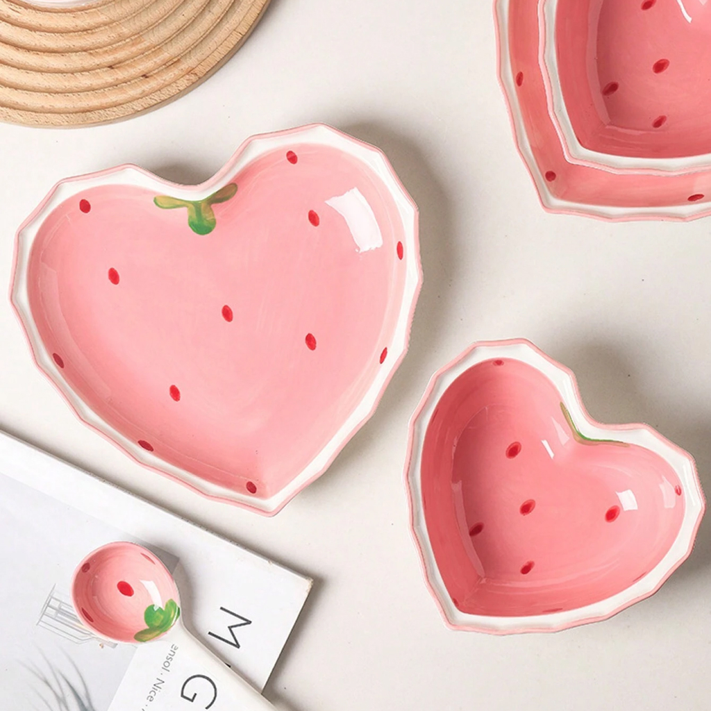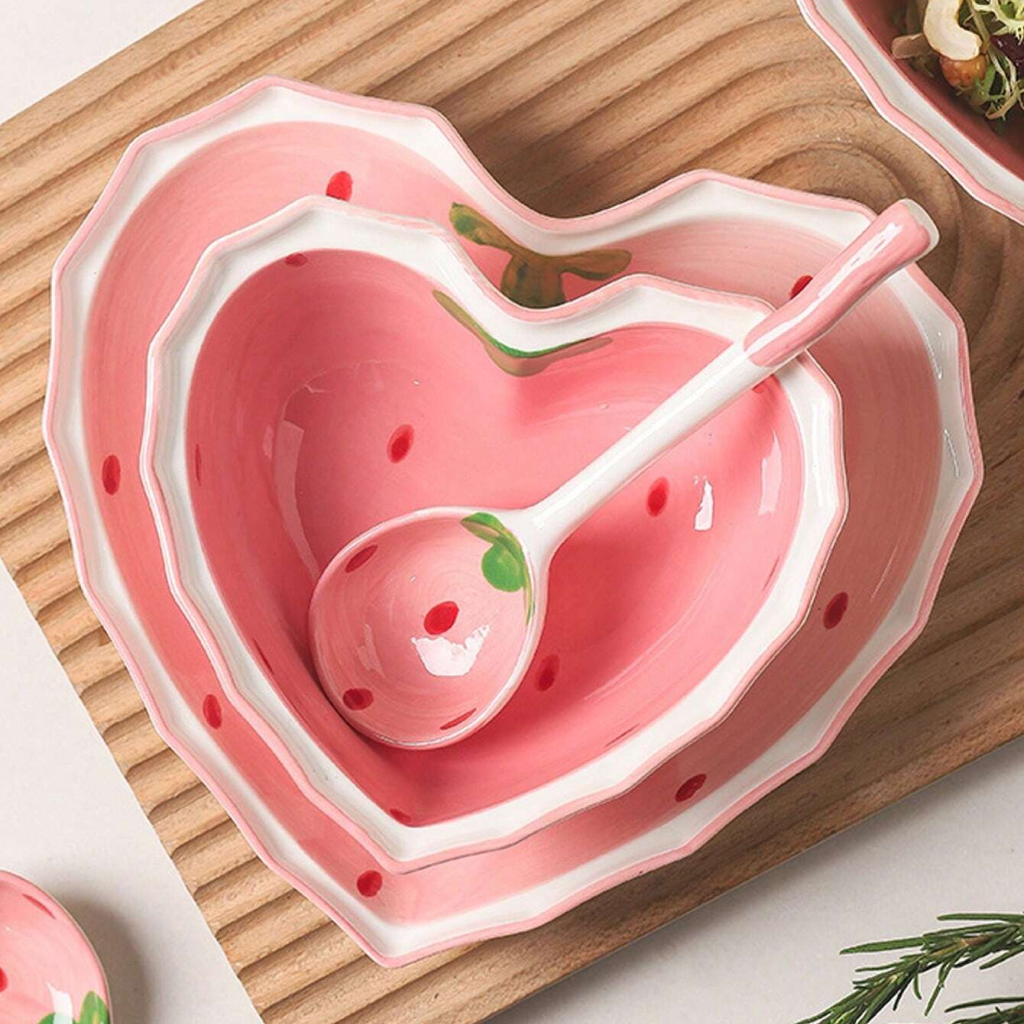 Bring a touch of sweetness and warmth to your table with our lovely pink, heart-shaped strawberry ceramic bowl. Designed for those who cherish the beauty in everyday moments, this exquisite piece of tableware elevates your dining experience with its hand-painted strawberries and enchanting design. Perfect for serving rice, desserts, noodles, or enjoying a hearty breakfast, it adds a lovely pink flourish to your meal times.