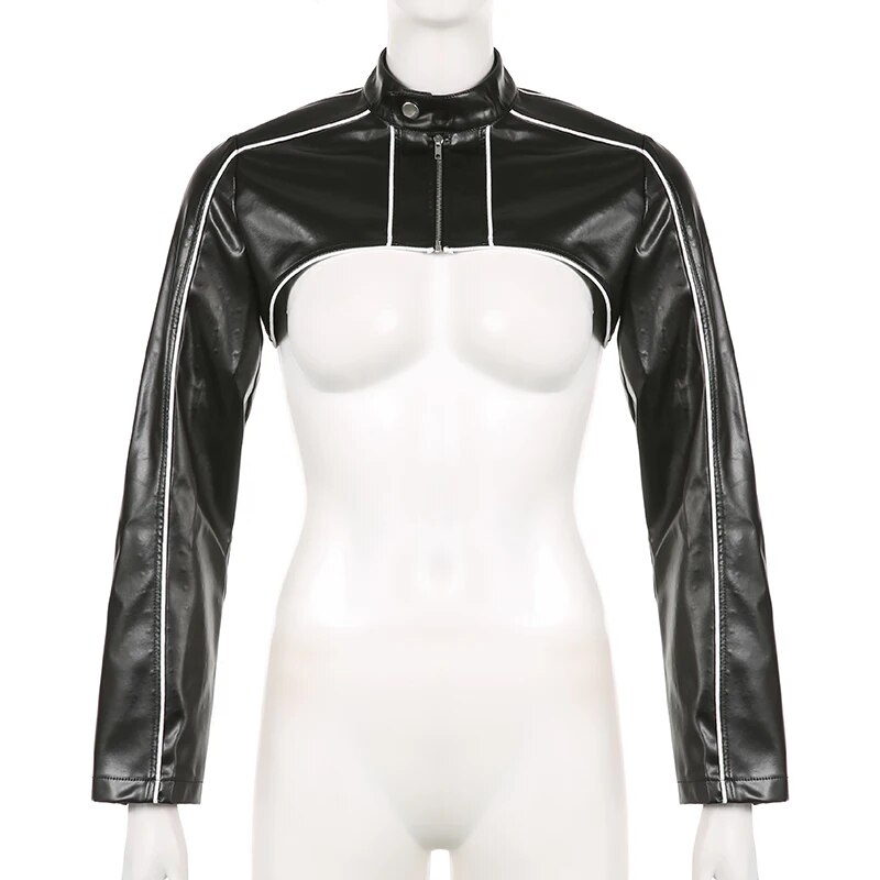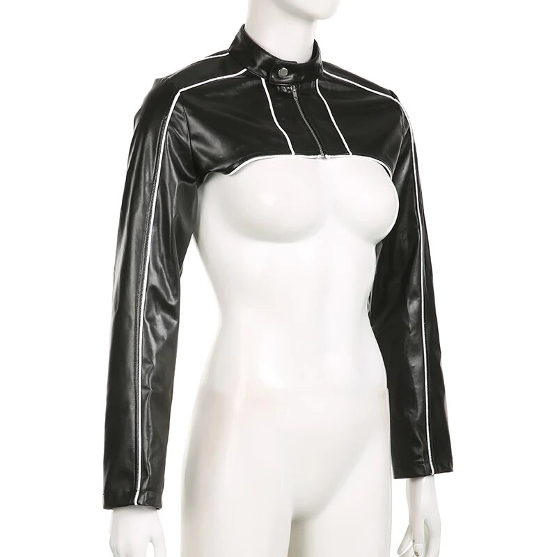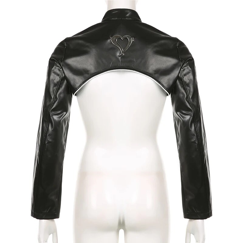 Chic Heart Stitched PU Leather Jacket