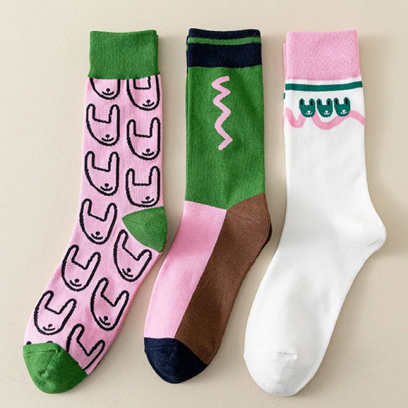 Spring Summer Pink Green Women Socks Cotton Kawaii Harajuku Cute Socks Abstract Cartoon Designer Socks