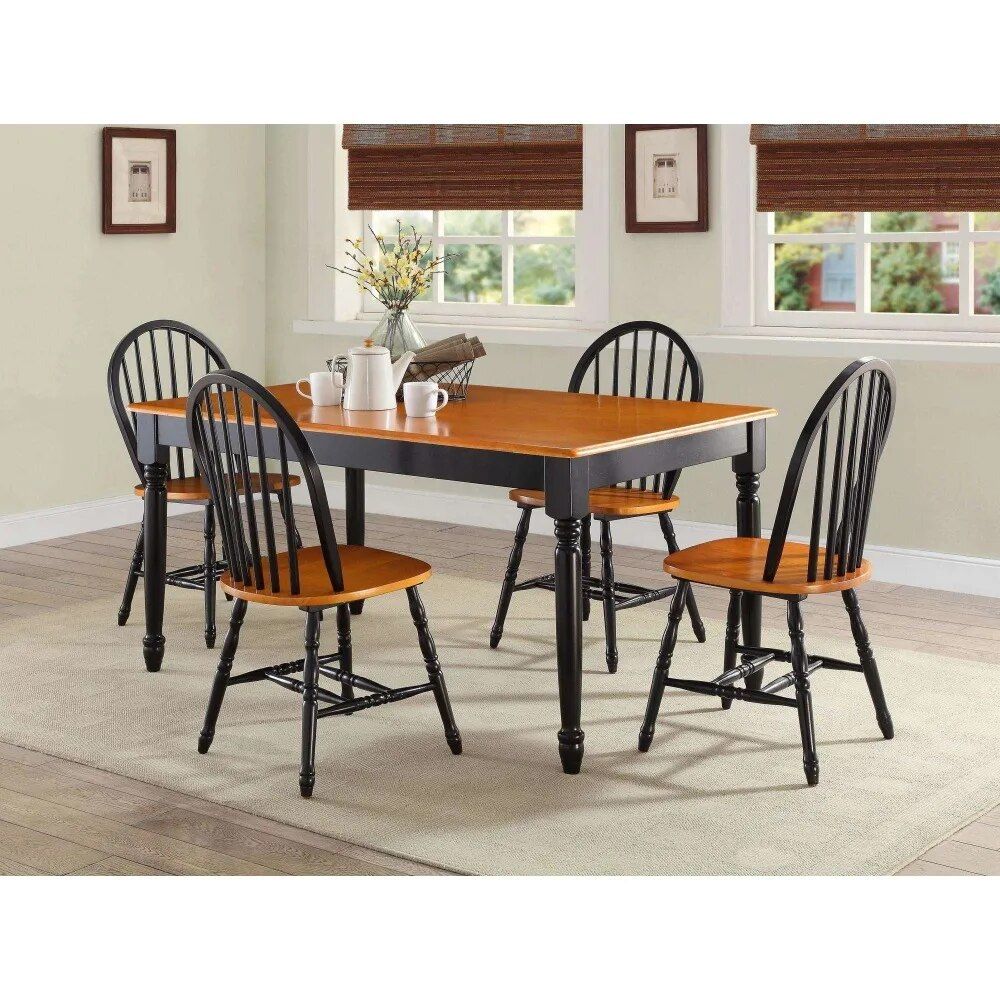Elegant Black and Oak Solid Wood Dining Chairs – Set of 2