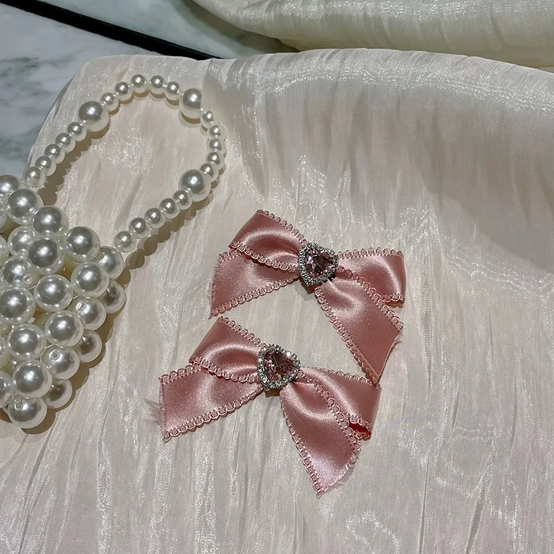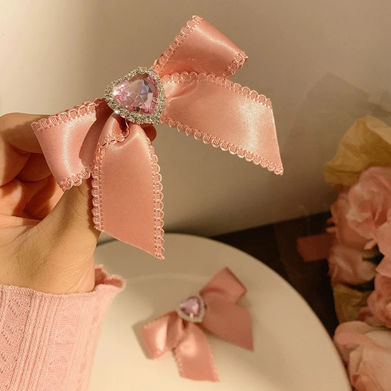Elegant Pink Bow Hairpins with Zircon Heart