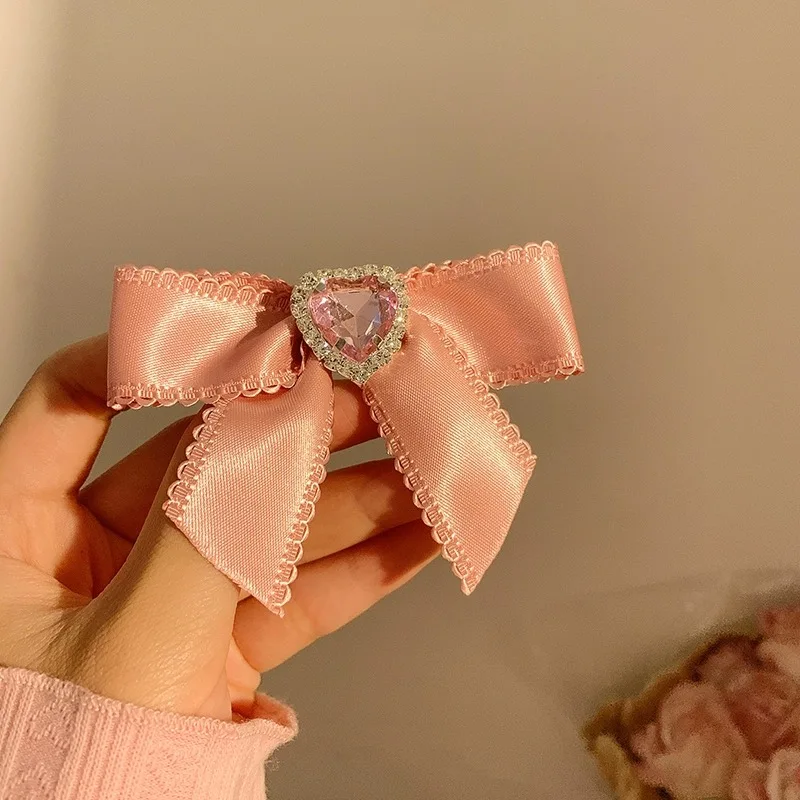 Chic Design: The elegant pink bow with a zircon heart encapsulates style, making it a versatile piece for any outfit.