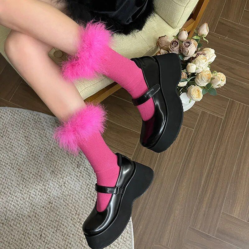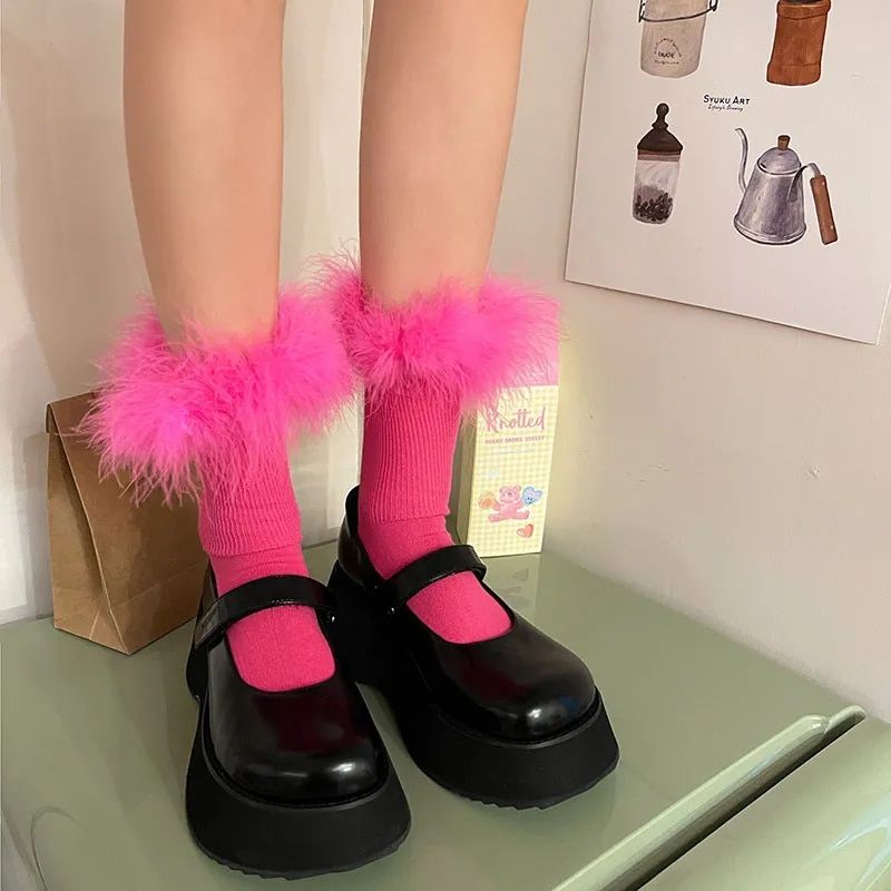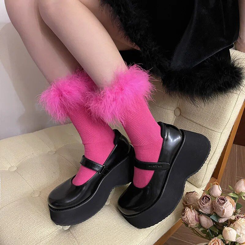 Our Rose Pink Feather Fur Cotton Socks are not just an accessory; they’re a statement. Whether you’re dressing up for a cosplay event, adding a touch of kawaii to your everyday outfit, or searching for the perfect quirky gift, these socks are guaranteed to deliver style, comfort, and a hint of playfulness. Remember, the actual color may vary slightly from the picture, and due to manual measurement, a slight size difference is expected. Embrace the unique charm and comfort of our socks and make your footwear the highlight of your outfit.