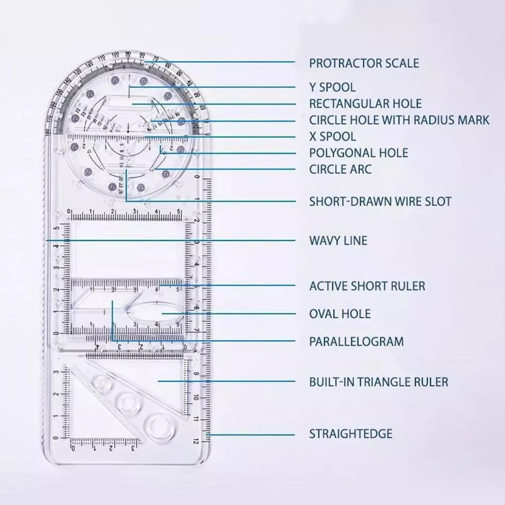 Ready to elevate your drawing experience? The Multi-Purpose Activity Drawing Ruler is here to transform your ideas into precise realities. Add it to your collection and witness a seamless blend of functionality and creativity. Order now and step into a world of accurate, beautiful designs!