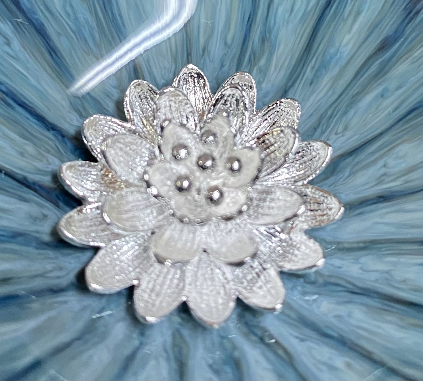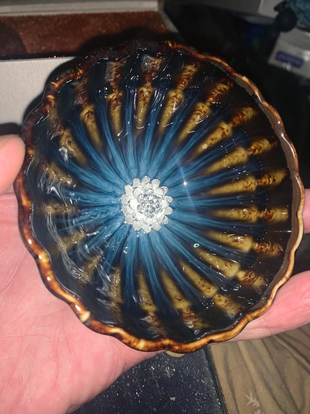 Surprisingly, the blossom inside the cup is a three-dimensional piece! I’m rating it four stars because the blues, particularly on the outside of the cup, are not as vibrant as shown online. Still, I love that blossom!