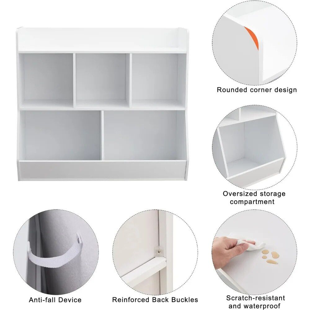 • Effortless Organization: With 5 spacious cubbies, you can effortlessly categorize toys, books, and more, teaching your child the value of order.