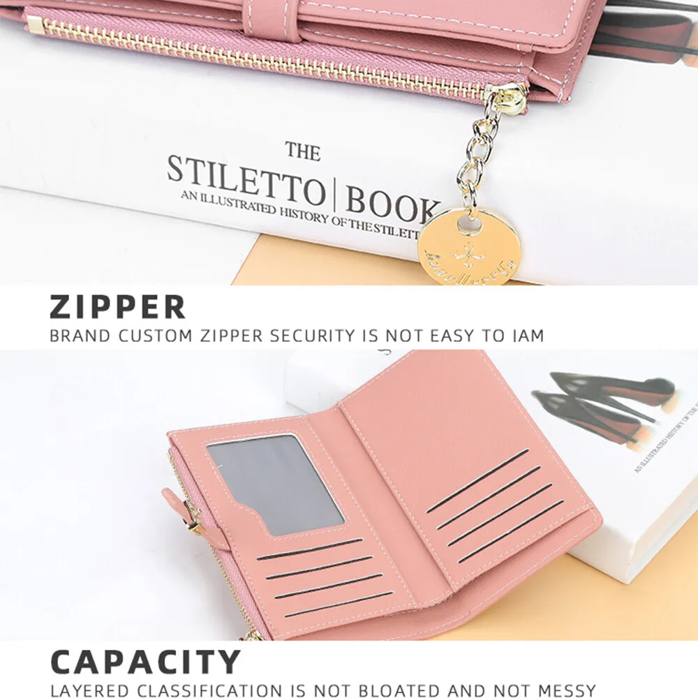 Whether you’re running errands, heading out for a night on the town, or traveling, this wallet is your go-to accessory. Its short length and lightweight design ensure it won’t weigh you down, while the array of interior compartments keeps your items neatly organized. The combination of zipper and hasp closure offers double the security for your valuables. Plus, the added wristband not only enhances its fashionable look but also provides a practical way to carry your wallet hands-free.
