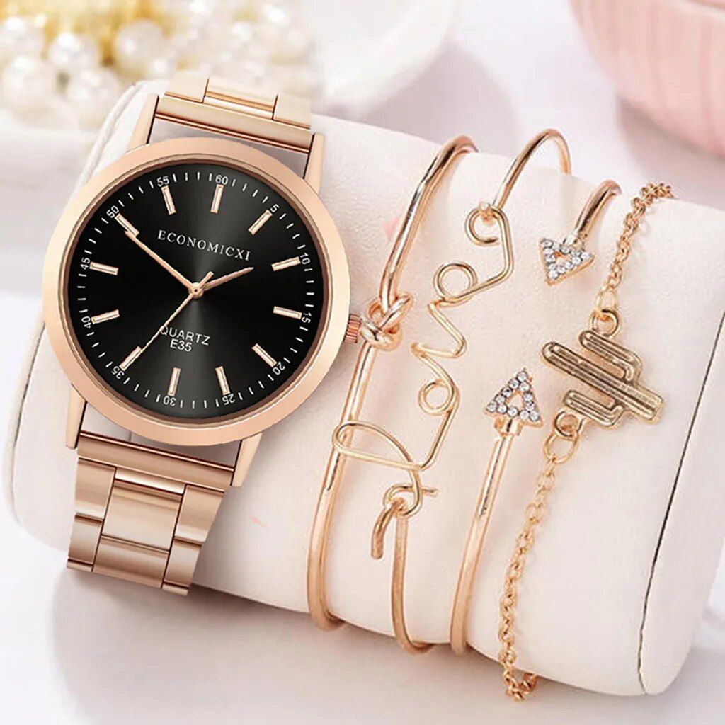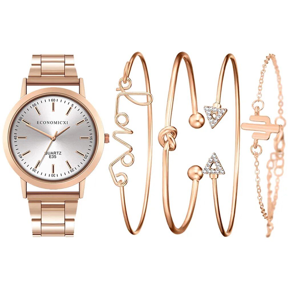 - Includes 1 Quartz Watch and 4 Gemstone Bracelets for versatile styling.