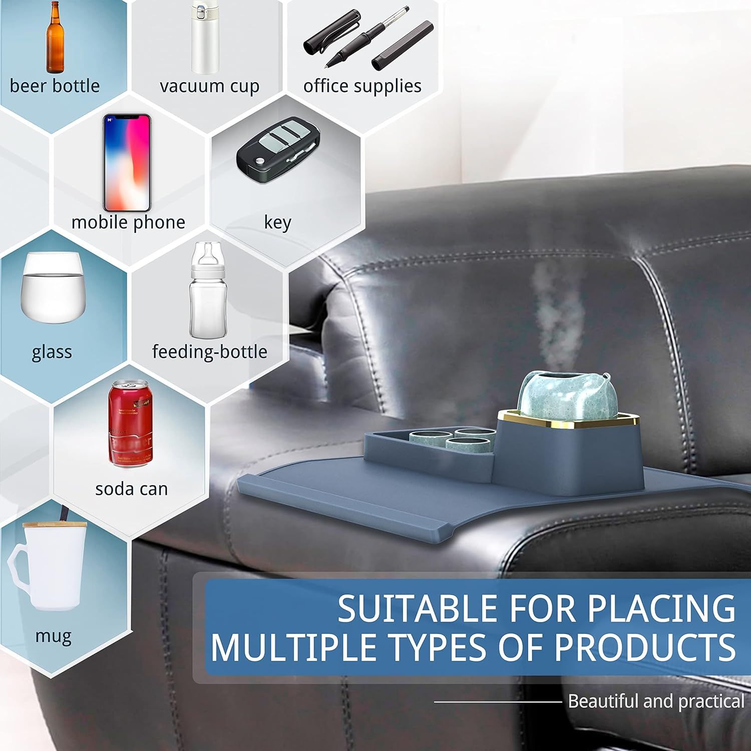 Whether you’re enjoying a movie marathon, hosting a casual get-together, or simply relaxing after a long day, our sofa armrest organizer keeps everything you need at your fingertips. It’s more than just a cup holder; it’s a versatile organizer that seamlessly integrates into your lifestyle. And with its sleek design and color options, it not only serves a practical purpose but also adds a touch of modern elegance to your living space.