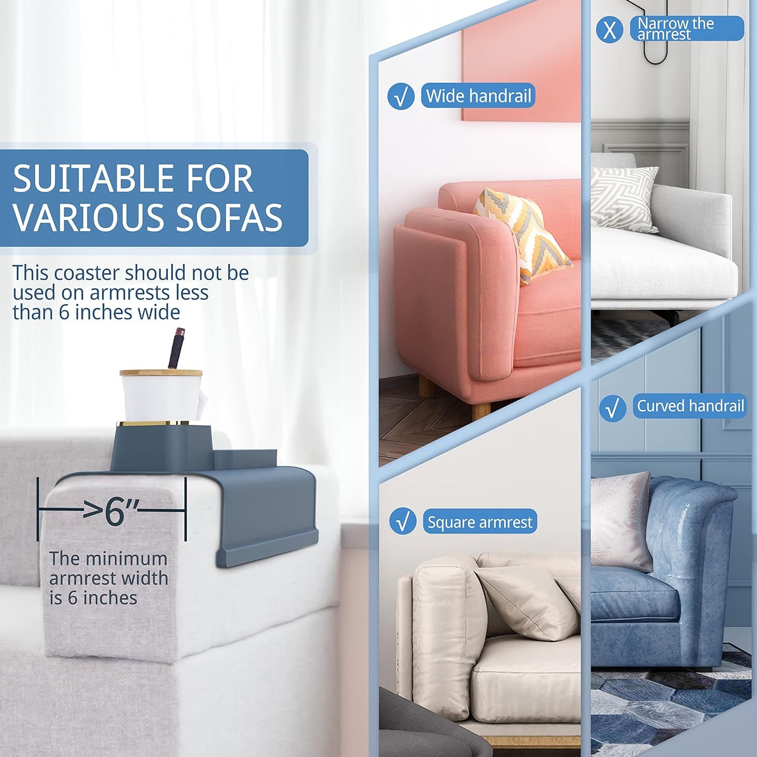 - Compatible with most sofa armrests (note: not suitable for armrests less than 15cm/5.91inch in width)