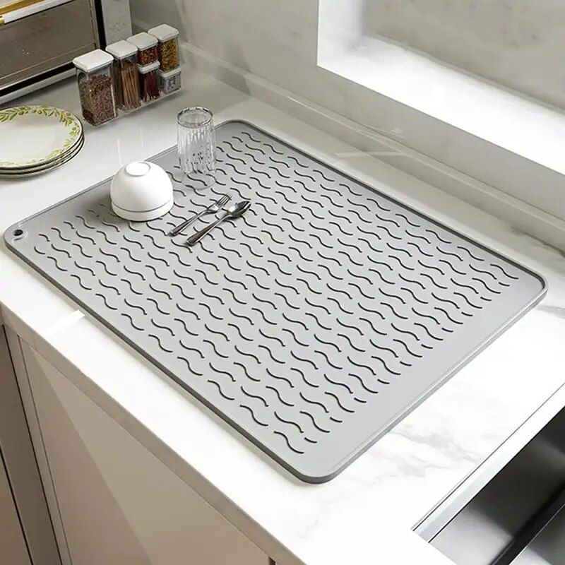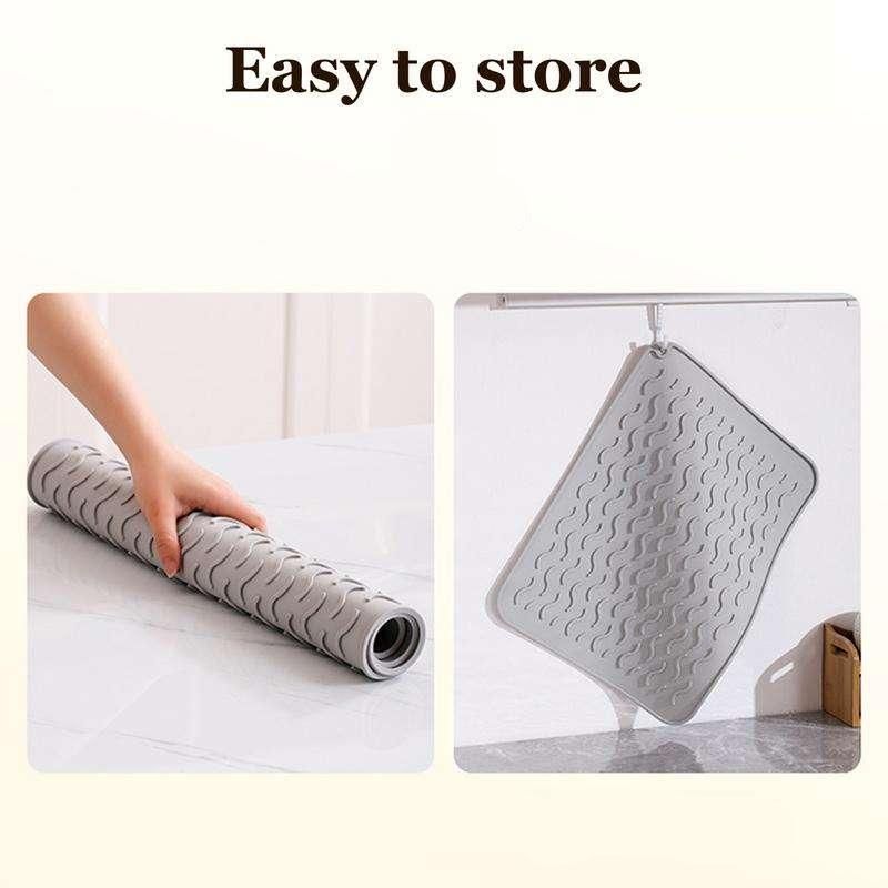 Step into the future of dish drying. Our mat’s quick-drainage design eliminates the need for bulky dish racks, freeing up counter space and streamlining your kitchen chores.
