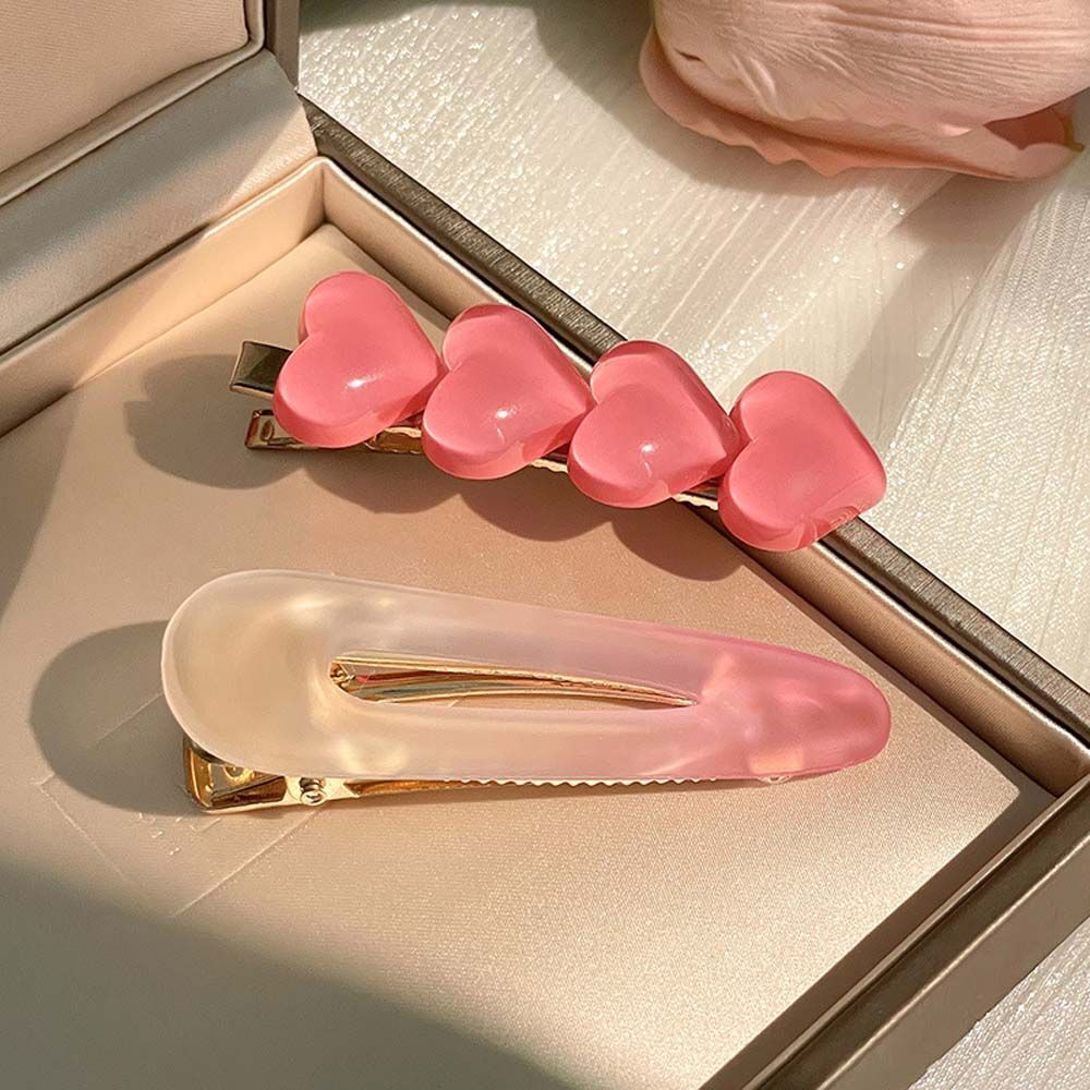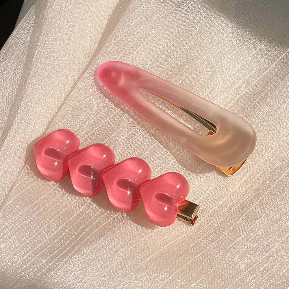 Pink Gradient Love Heart Hairpin Set