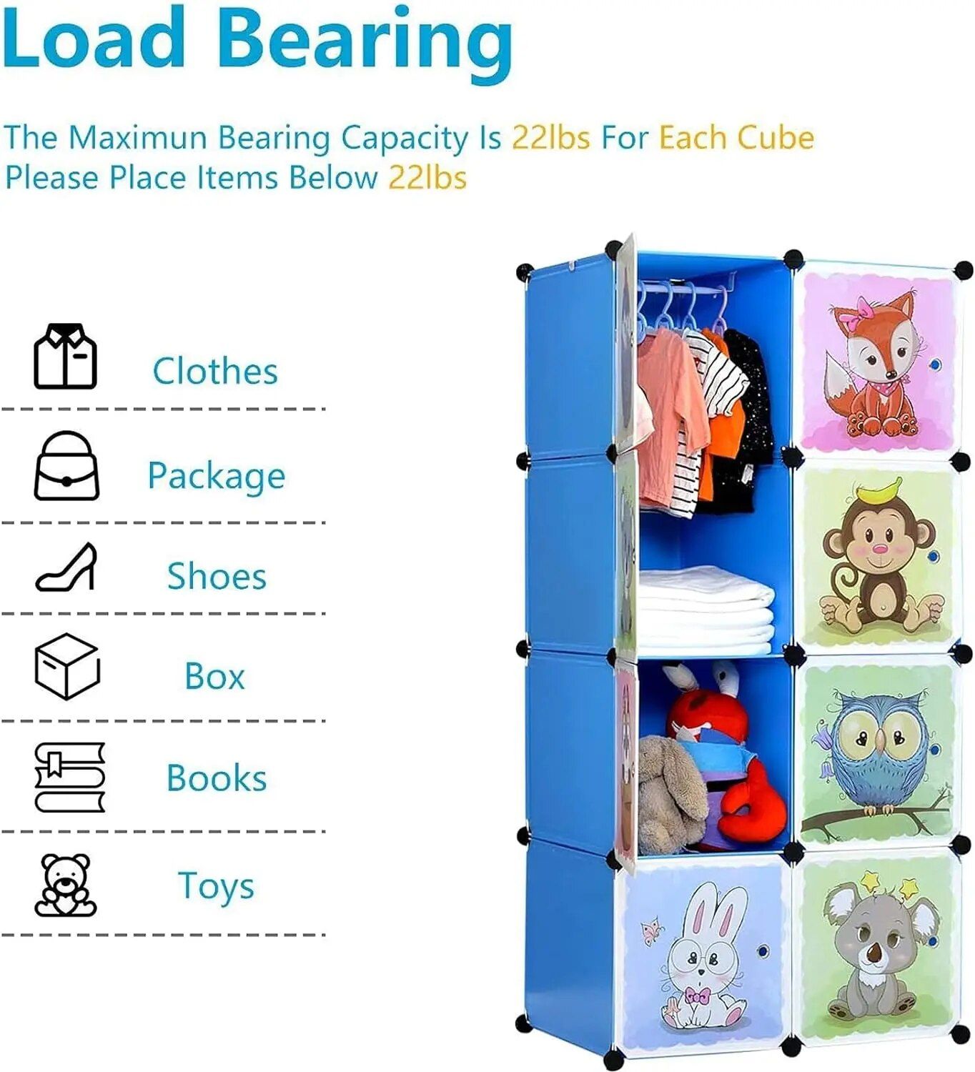 - Safety & Sturdy Wardrobe: Safety is our top priority. The panels are light and soft, making them harmless for kids. Plus, the high-quality resin composite materials with a steel frame ensure that each cube or hanging section can support up to 10 kgs, keeping everything securely in place.