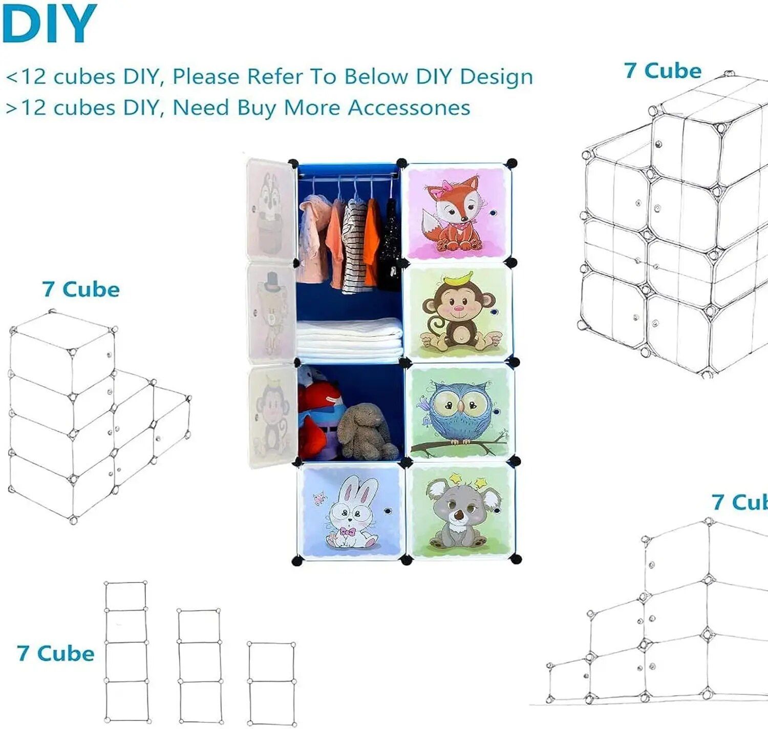 Portable Cartoon Clothes Closet DIY Modular Storage Organizer for Kids