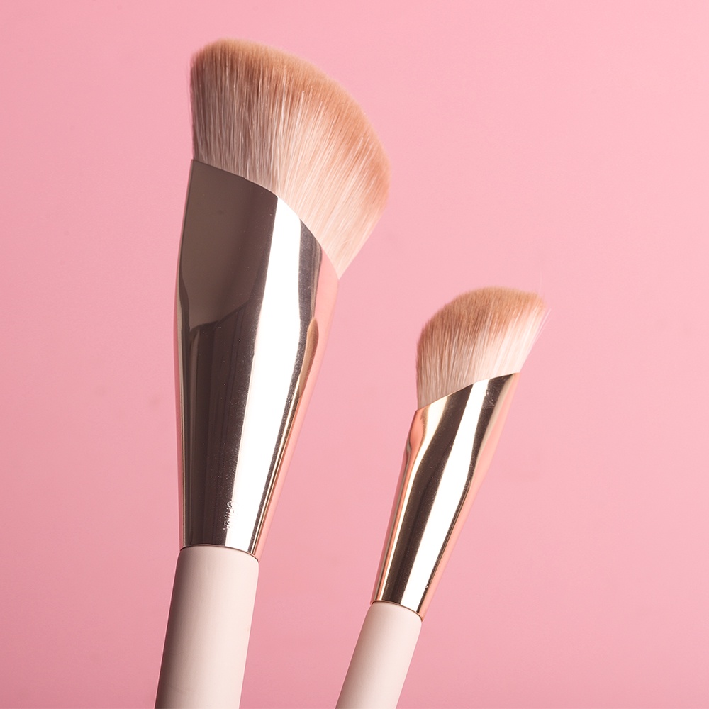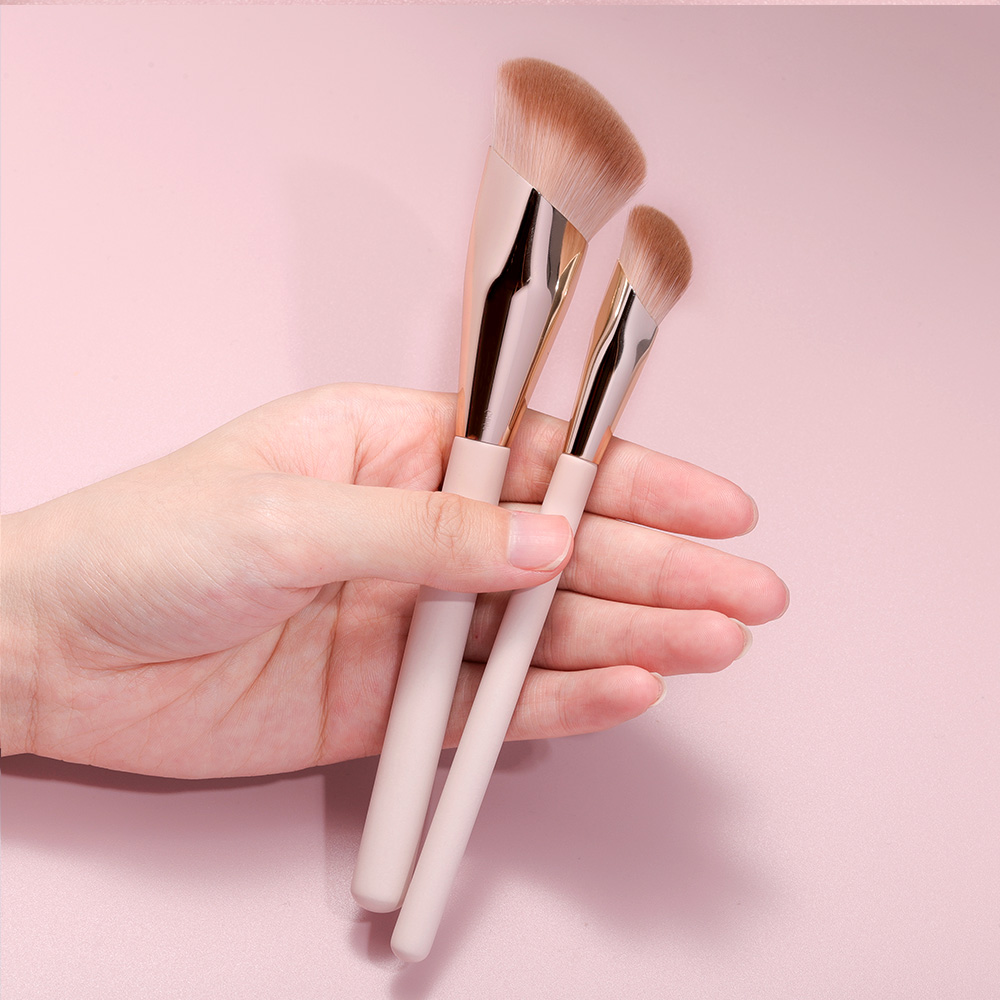 What sets our Professional Liquid Foundation and Concealer Makeup Brush Set apart is the unique oblique head design. This feature allows the brushes to fit the contours of your face perfectly, providing full coverage while also reaching delicate areas around the eyes, nose, and mouth. The high-quality synthetic hair ensures a soft touch and smooth application, while the lightweight design makes them easy to use.