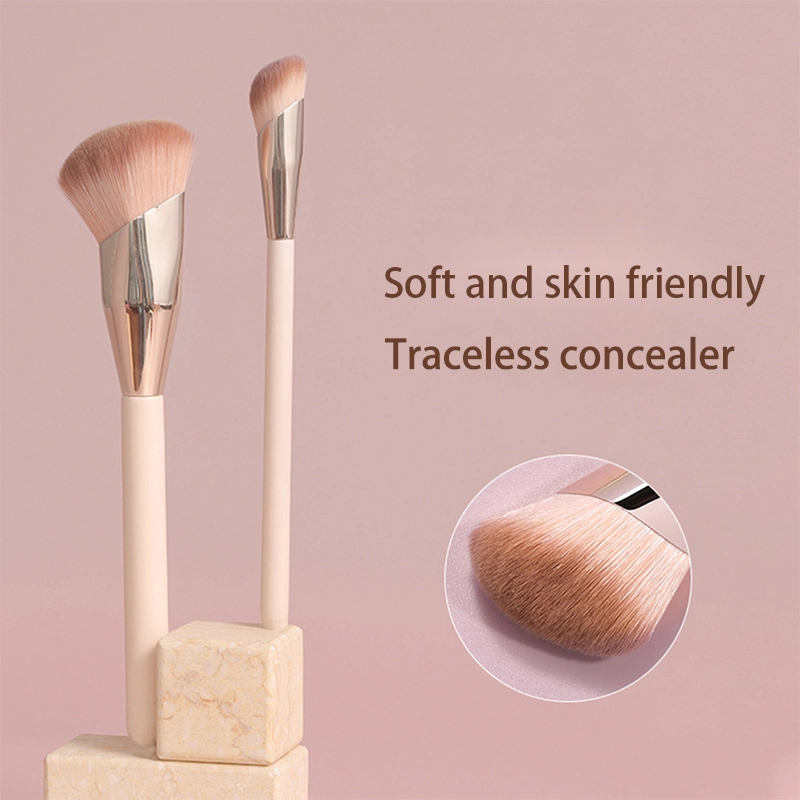 These brushes are versatile and perfect for daily use. The foundation brush is best used for applying liquid foundation, ensuring a lightweight, powder-free finish that looks natural. The concealer brush excels at covering imperfections such as acne, eye bags, tear grooves, nasolabial folds, and dark circles, making it an essential tool for a flawless complexion.
