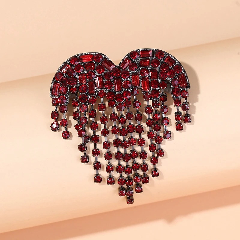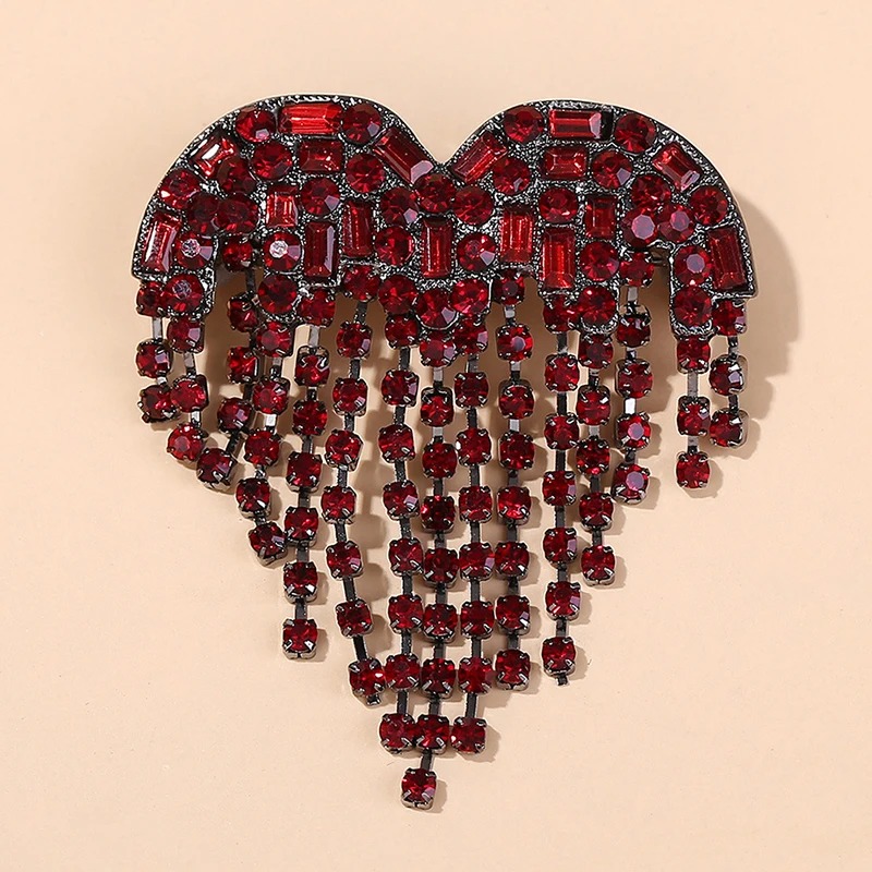 Unlock the Power of Elegance with Our Red Tassel Heart Rhinestone Brooch Pin