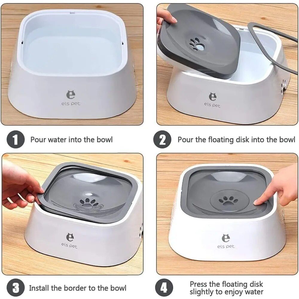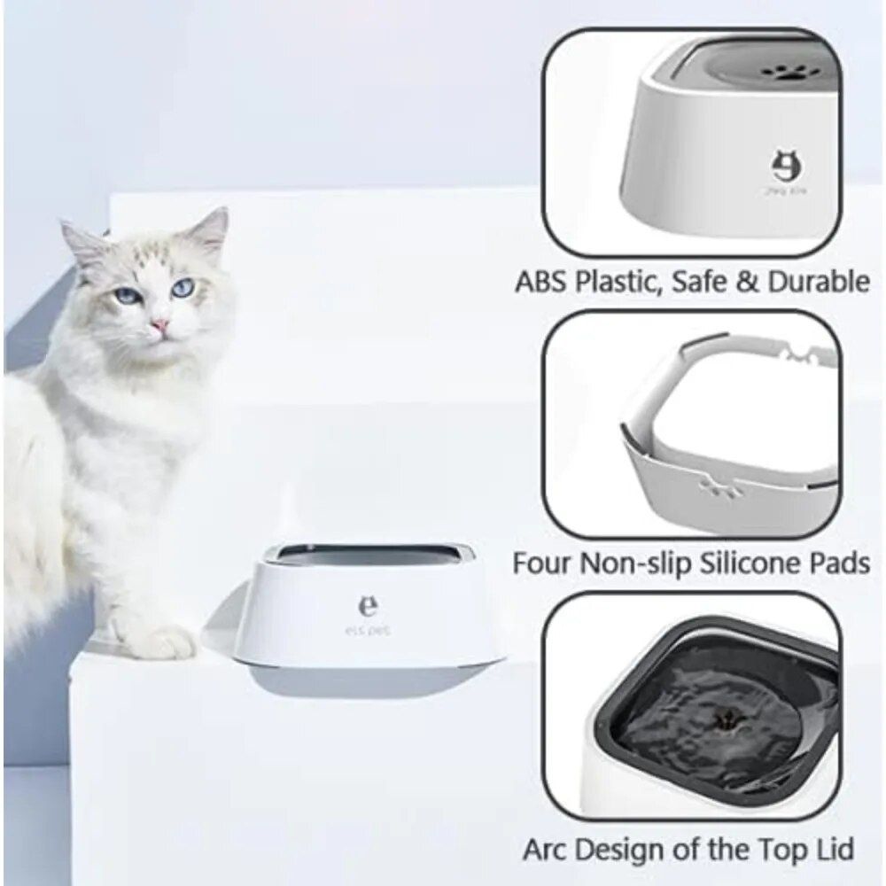 • Anti-Spill Design: Equipped with a waterproof edge and floating plate, our bowl prevents water splashes and spills, keeping your floors dry and clean.