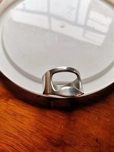 Recommended by my daughter for its practicality as a bottle opener, this ring surpassed expectations, suggesting ordering a larger size for a better fit.
