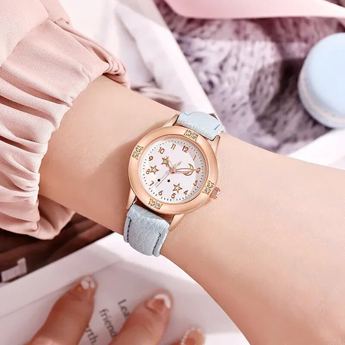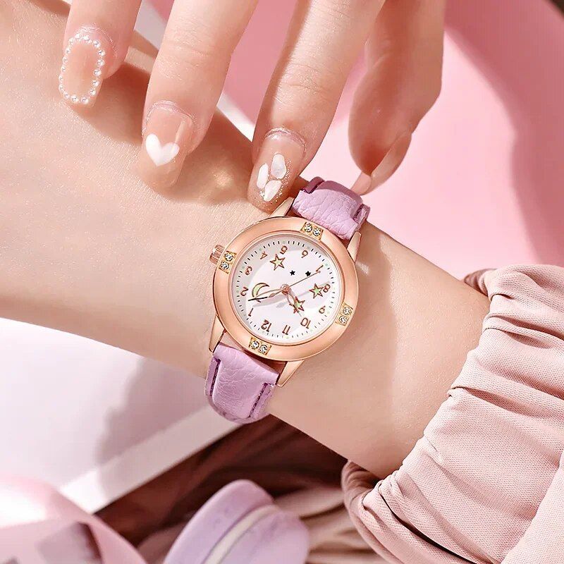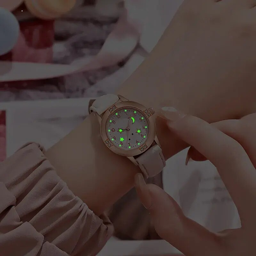 Star Moon Luminous Leather Watch for Girls & Women