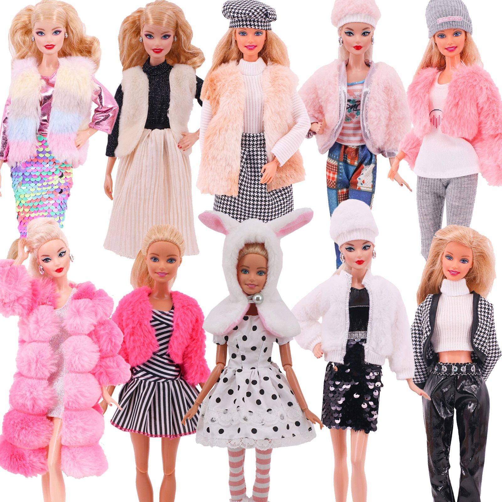 Our set stands out with its high-quality materials and detailed design. The plush fur vest and coat add a touch of luxury, while the stylish dresses are perfect for any casual or formal occasion. Made from premium cloth, these pieces are durable and beautifully crafted, ensuring long-lasting play.
