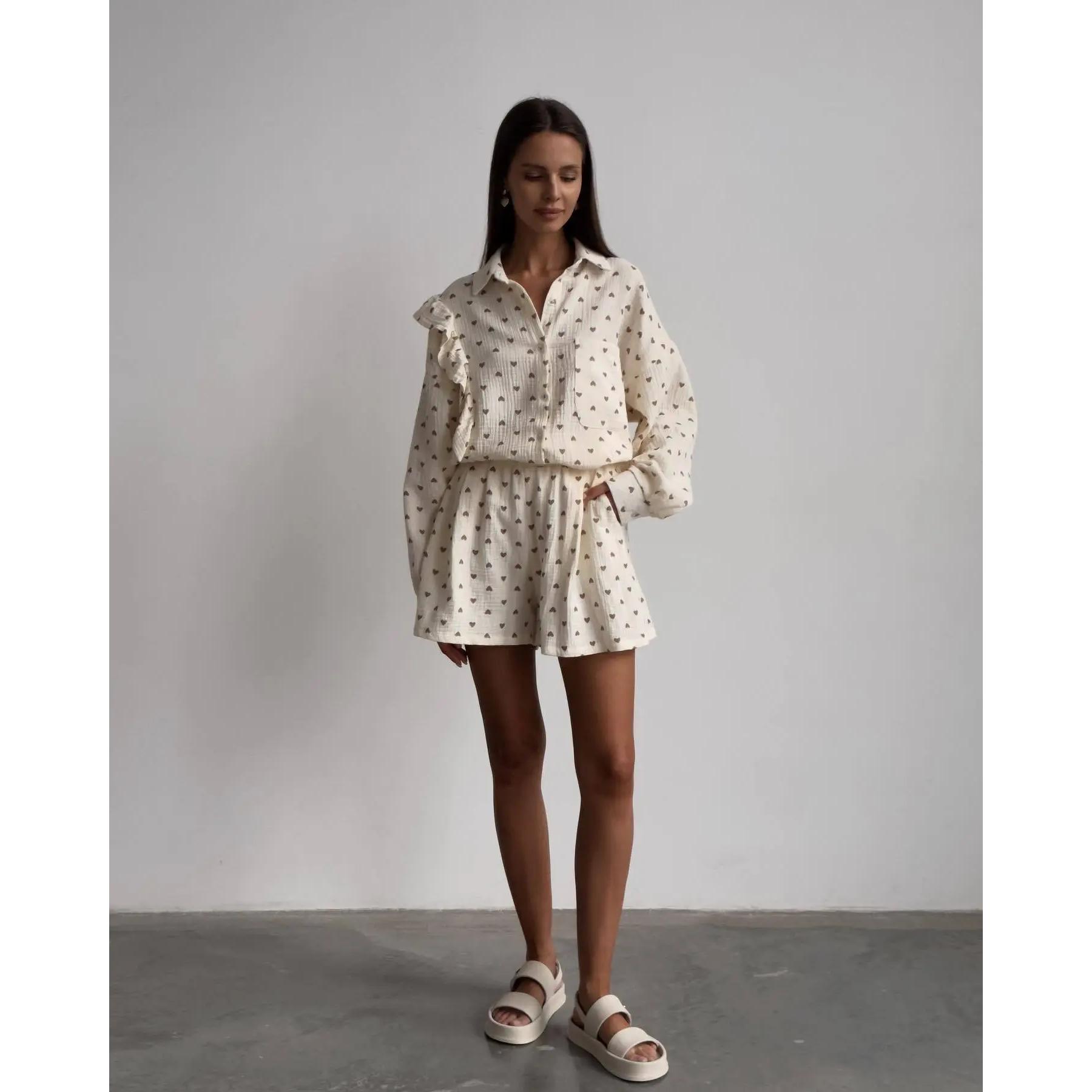 • Elegant Design: Casual yet stylish, with a turn-down collar, single-breasted shirt, and elastic waist shorts for a loose, comfortable fit.
