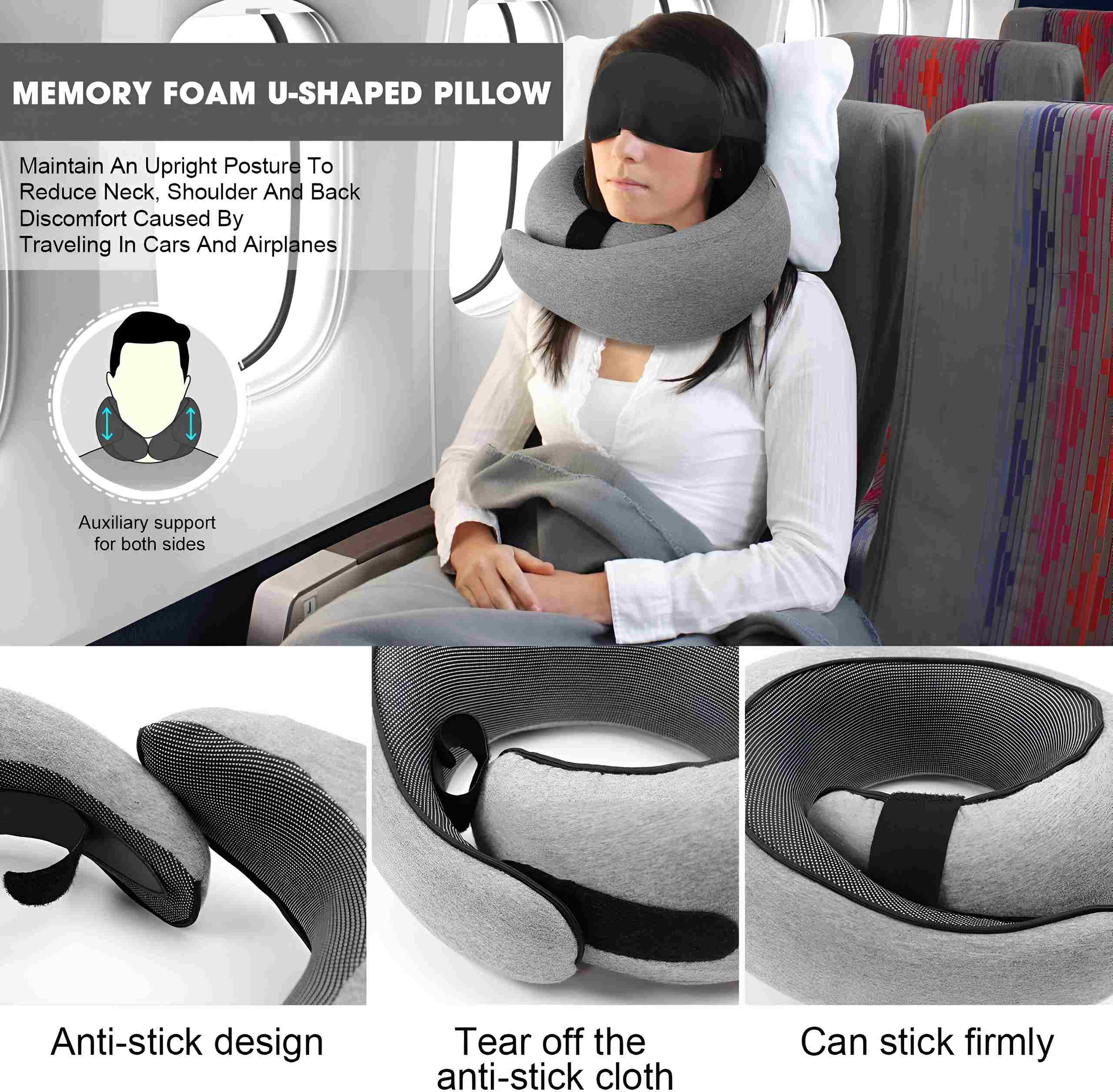 Travel Neck Pillow Memory Foam U-Shaped Adjustable Neck Support Pillow