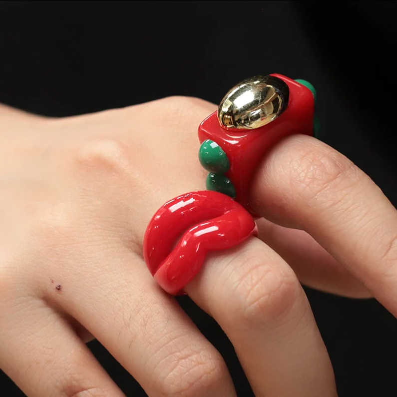 Be the first to review “Trendy Punk Red Lips Acrylic Ring”