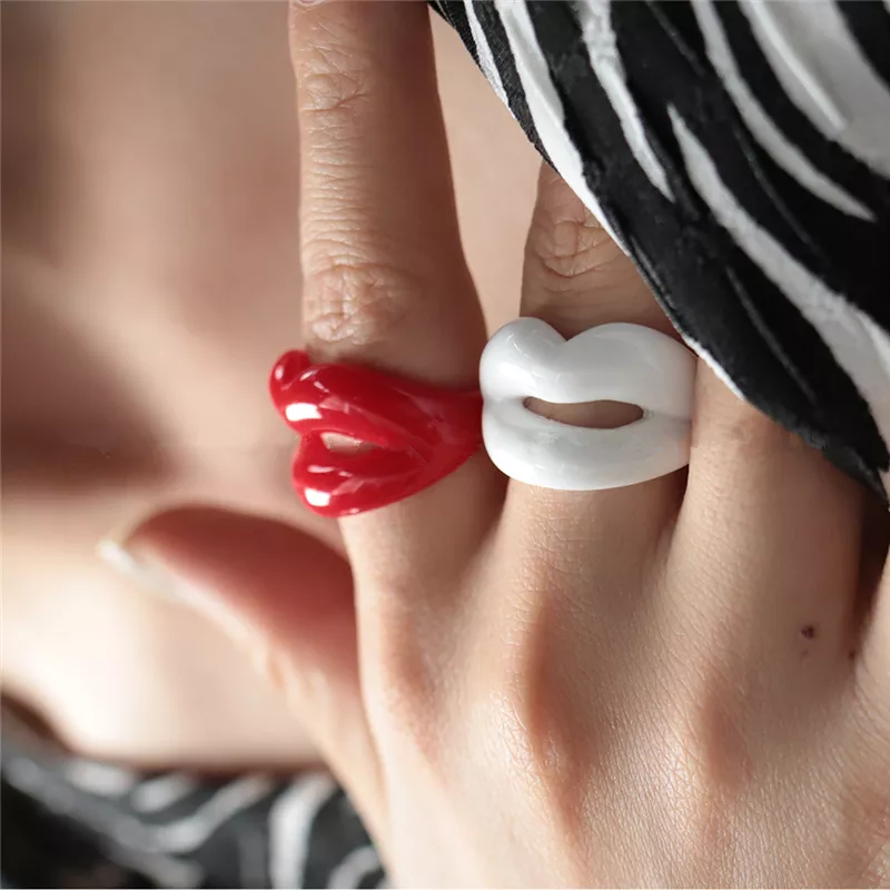 Trendy Punk Red Lips Acrylic Ring