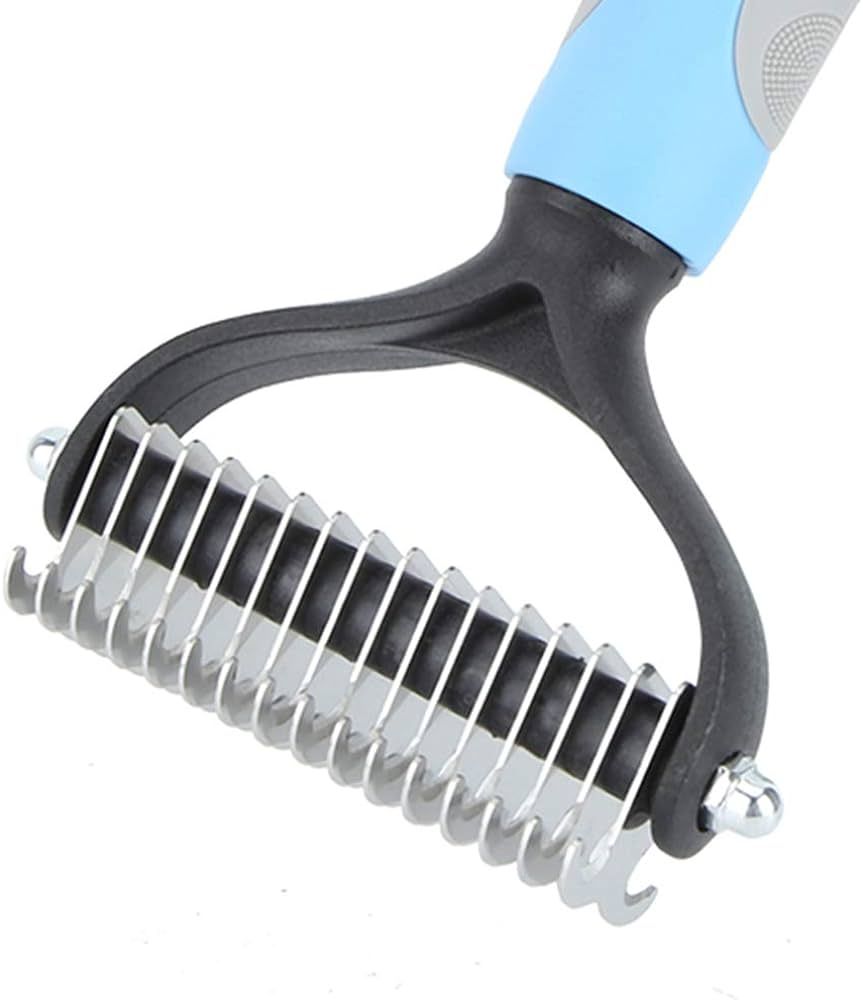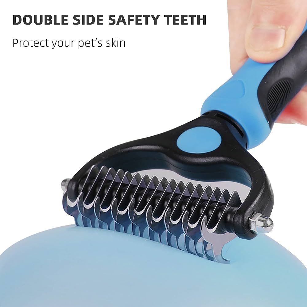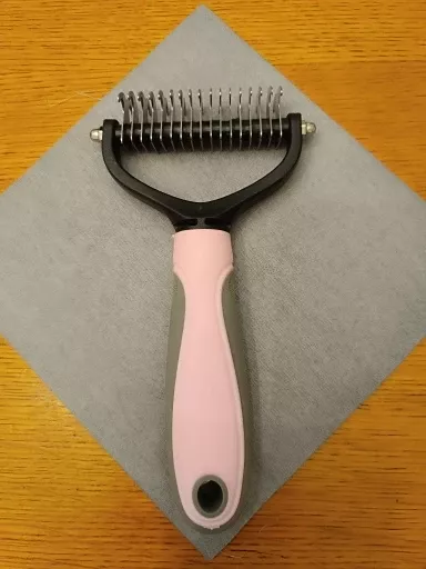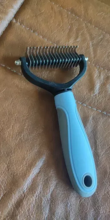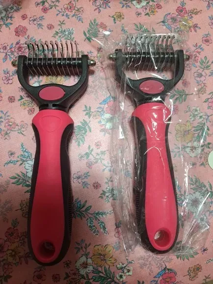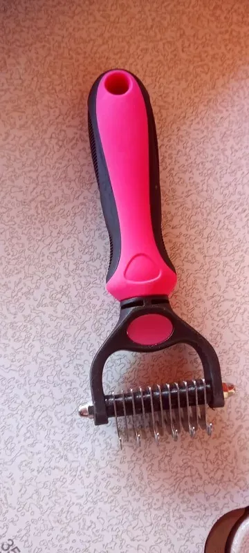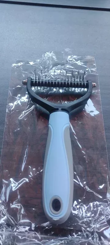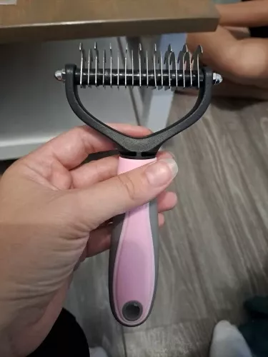 Never thought I’d rave about a pet grooming tool, but here I am! This double-sided hair remover is a game-changer. My home is finally winning the battle against pet hair, thanks to the efficient knot removal and easy de-shedding. My cat, usually averse to grooming, now purrs contentedly as I comb through her fur, thanks to the gentle, no-scratch design. The ergonomic handle means my comfort isn’t sacrificed, and the sleek, healthy results speak for themselves. It’s not just a brush; it’s an essential part of our daily routine now.