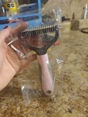 I’ve finally found the holy grail of pet grooming with this double-sided hair remover! It’s a complete lifesaver, tackling the stubborn knots and loose fur on my golden retriever with ease. The stainless steel teeth glide through tangles without any discomfort, leaving behind a beautifully smooth coat. What’s more, I’ve noticed a healthy sheen and less shedding around the house. The ergonomic design makes it comfortable for both of us during grooming sessions. A must-have for any pet owner tired of fur-covered furniture!