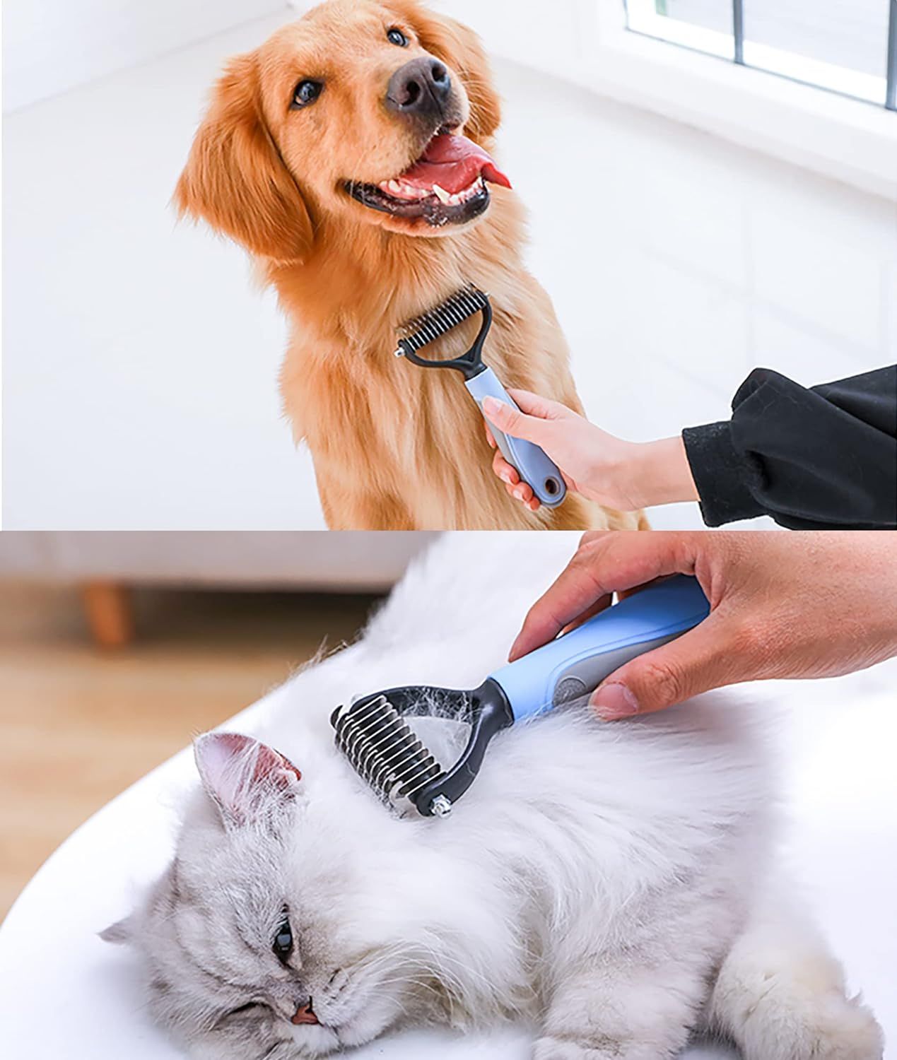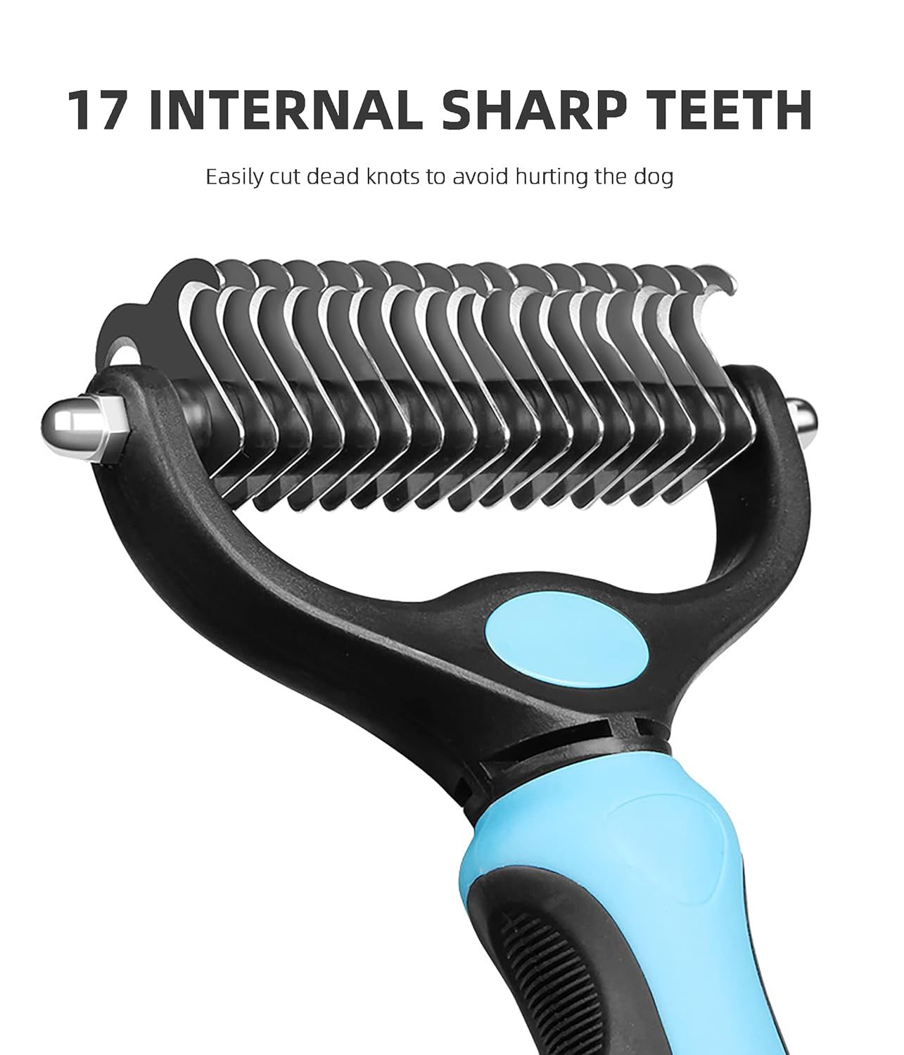 Efficient Knot Removal: Equipped with sharp stainless steel teeth, our hair remover gently cuts through larger knots and tufts without pulling, providing a pain-free grooming experience for your pet. Say farewell to knots and enjoy a sleek, smooth coat in minutes.